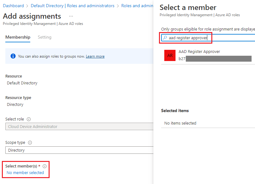 Lastly, we need to assign the Cloud Device Administrator role to the Service Principal for the App Registration.