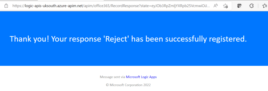 If rejected, the App leaves the Azure AD object disabled and sets extensionAttribute1 to ‘Rejected’. It also emails the user notifying that the device was blocked.