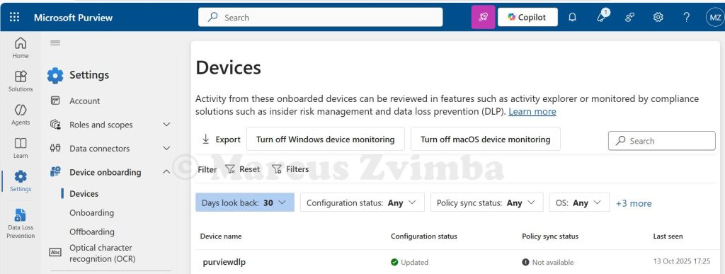 If the device shows up and is active, congrats – you now have an endpoint that Purview can protect with DLP policies. (“Enrolment” complete! ✓)