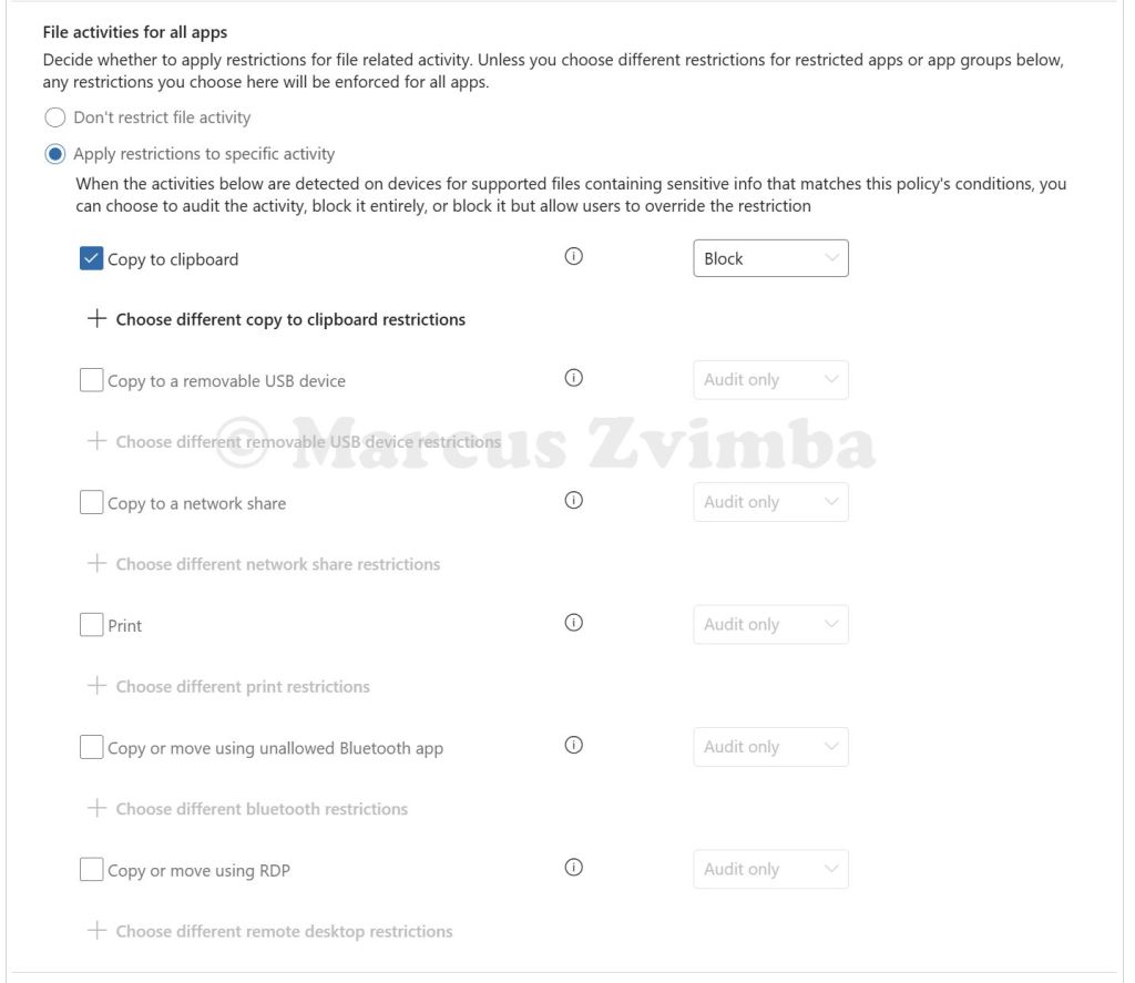 - Limitations: This solution prevents direct file access or copying. It doesn’t cover a scenario where a user might manually re-type info or if they took a screenshot and fed that to an AI (that’s a different vector – though Purview can also block screen captures of labelled content if you disable the Copy permissions in Access Controls in the sensitivity label).