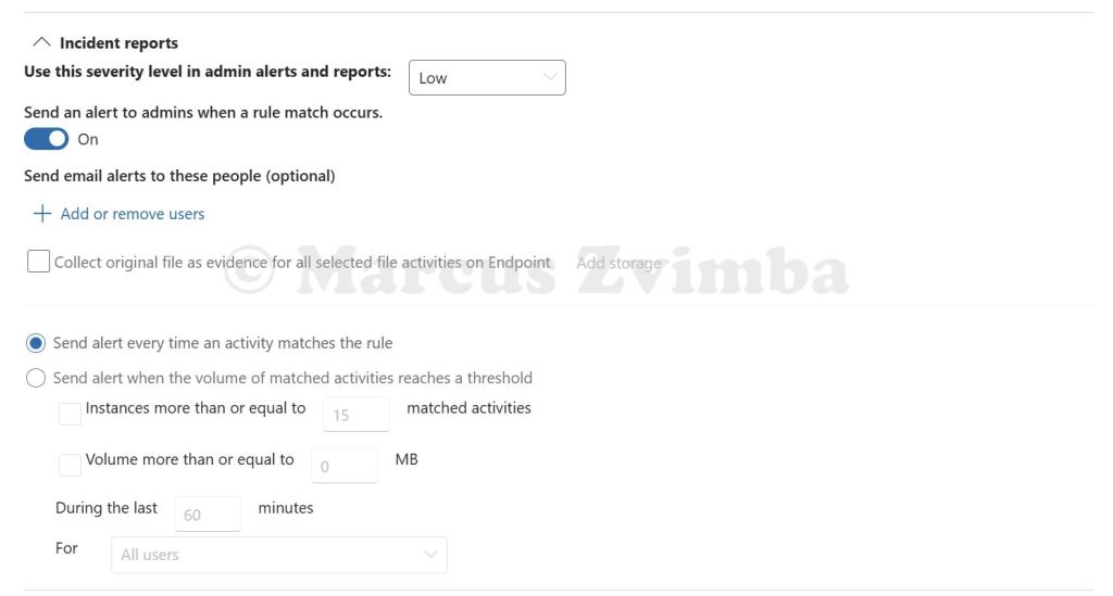 - For the lab, I toggled on Alerting for this rule. This way, when it triggers, an alert is generated in Purview (useful to demonstrate logging). Set it to alert every time or just the first time – up to you.